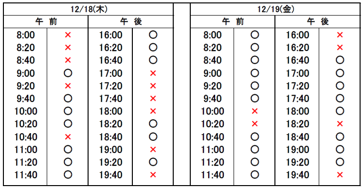 12月18日の予約状況